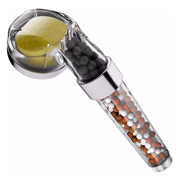 Pachetul cuprinde un cap de dus cu o aroma de Vitamina C si granule minerale: