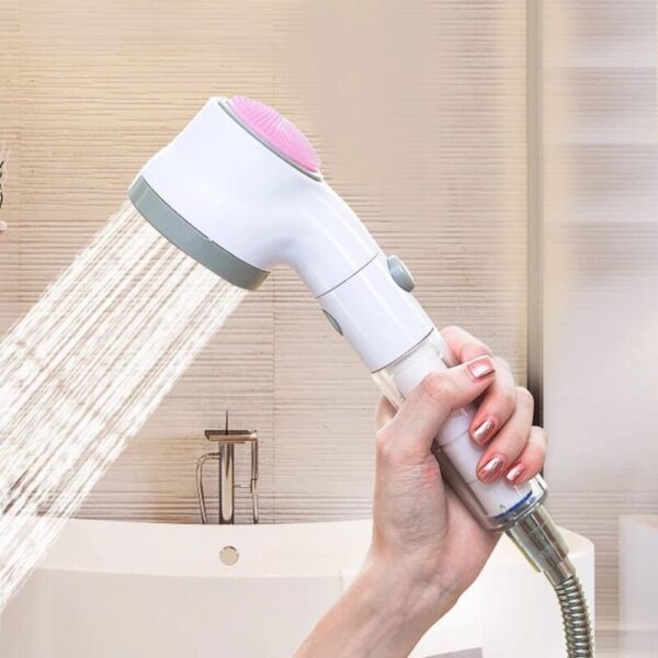 Pachet 2 piese, Cap de dus cu microfiltru de bumbac, granule minerale si perie siliconica de curatat + furtun inoxidabil calitate premiuim