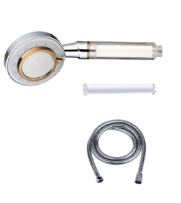 Pachet 3 piese Cap de dus cu microfiltru de bumbac cu 3 jeturi, masaj, ploaie, furtuna + rezerva microfiltru bumbac + furtun inoxidabil